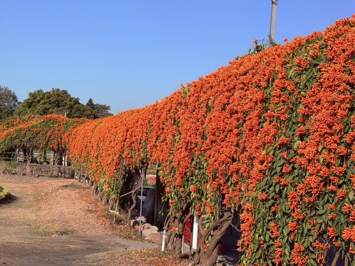 中社花董事長賴啟文表示;2026年新春佳節即將來臨,中社花海區橙色花瀑布─炮仗花花牆正應景大爆開,迎接遊客遊園賞花,有艷麗的鬱金香正盛開,每週翻新花色,搭配荷蘭風車,宛如各色各樣七彩泡泡,歡迎來到歐洲夢幻國度!加上荷蘭鳶尾花、五彩百合花、西洋水仙、風信子、彩色海芋..等各種溫帶球根花卉的造景佈置,還有全台唯一火炎山的背景襯托所呈現出來的七彩花田,包含太陽鳳仙花、一串紅、鼠尾草、波斯菊、萬壽菊、夢幻草等