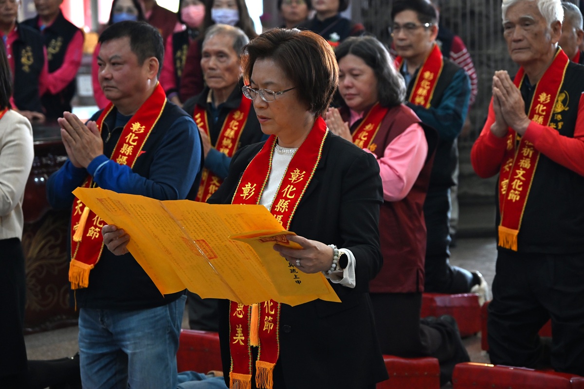 縣長王惠美表示,去年擲筊選爐主,媽祖聖示今年由芳苑普天宮接任舉辦「2026彰化縣媽祖祈福文化節」。感謝爐主宮廟的用心,以及其他12間媽祖廟的齊心協力,共同傳承及發揚媽祖文化,媽祖祈福文化節除了推廣媽祖文化外,同時也有繞境及相關活動,內容精采可期,邀請大家共襄盛舉,來芳苑普天宮祈福拜拜,一次就可獲得13尊媽祖神力加持。