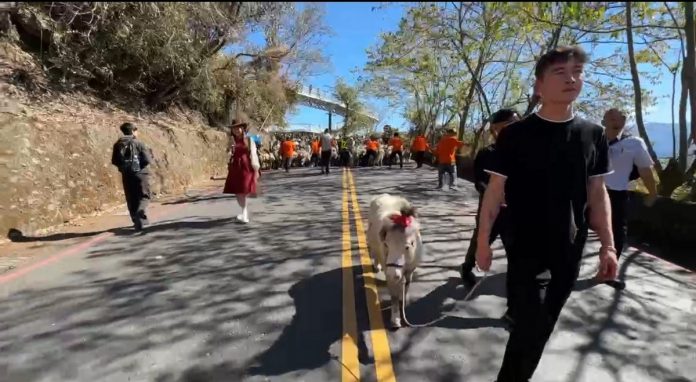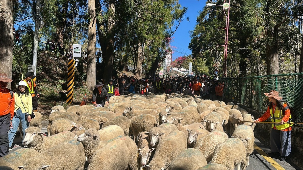 退輔會清境農場年度盛事奔羊節系列活動 13日開奔,適逢農曆春節假日前夕,115對綿羊由馬匹領頭奔跑在雲端公路,意味「一馬當先、羊羊得意」,從臺14甲線9.5K南票口路跑至7.5K國民賓館,羊群時而停頓或快跑的可愛模樣,讓遊客感受幸福「羊」溢的高山牧場魅力。