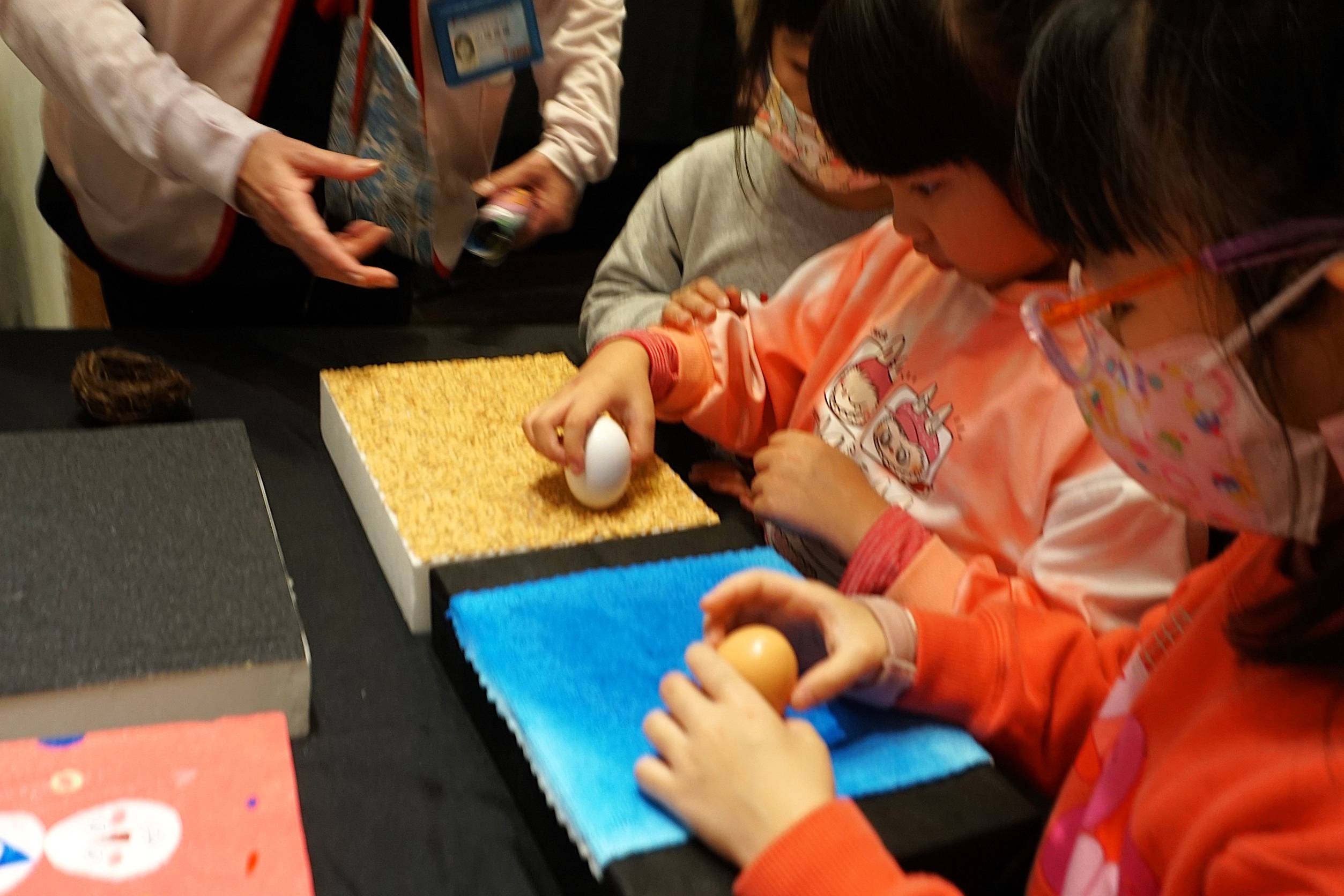 本次展覽以「從生活出發,培養觀察與思考能力」為核心理念,規劃多元主題展區,循序引導觀眾深入認識蛋的世界。在「蛋的大小與生命差異」展區中,透過實體展示與引導式說明,讓孩子實際比較自然界中不同尺寸的蛋,從最大到最小,思考其背後的生存策略與生命需求,進而理解生命型態的多樣性與自然界的平衡設計。