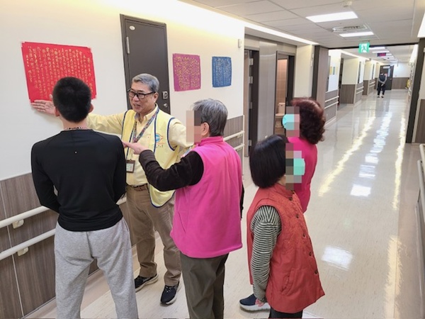 仁愛醫療財團法人附設大里仁愛護理之家策劃「長者藝術展—藝術迴廊」,展出住民吳爺爺的繪畫畫冊及吳奶奶的書法作品,提供家屬、志工和訪客前來欣賞。正在接受安寧照護的住民宋爺爺看了展覽後,開始向吳奶奶請益學習書法,宋爺爺家人表示很欣慰,雖然爸爸說拿毛筆比鋤頭重,但還是寫得很開心又有心得,很感謝團隊引導讓爸爸生活更充實,年節期間也跟親戚朋友分享作品,使生活變得更加充實,有「被看見」的感覺,也是再一次「自我實現」。