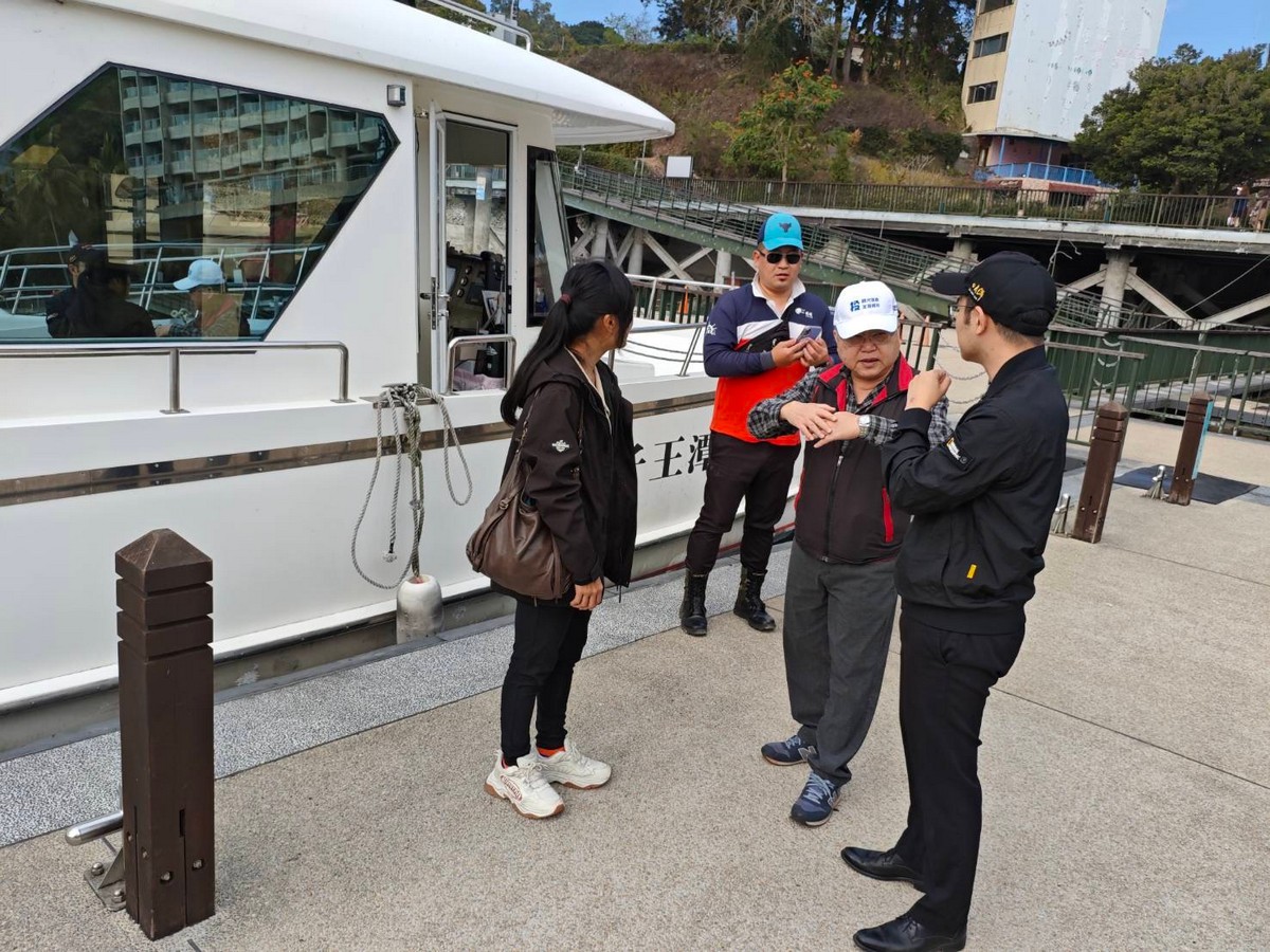 因應228和平紀念日連假將至,且適逢日月潭周邊地區櫻花盛開,交通部觀光署日月潭國家風景區管理處預期大量遊客將湧入帶動船舶載客與水域遊憩活動。日管處為保障遊客旅遊安全,於今日(2/25)邀集交通部航港局中部航務中心、南投縣政府觀光處、衛生局、環境保護局、警察局集集分局及台灣電力股份有限公司啟動日月潭船舶暨水域遊憩活動聯合稽查,同時向有關業者宣導作業安全重點,維護遊客旅遊安全。