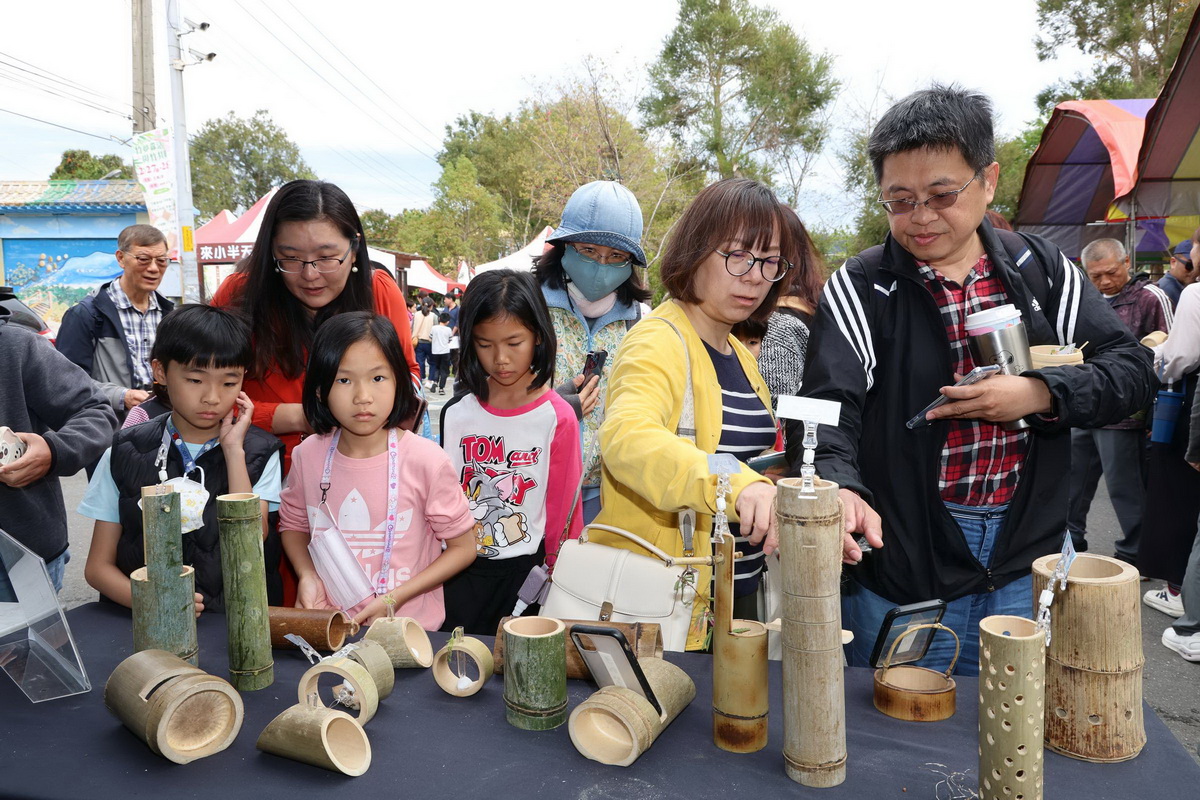 許多民眾都來欣賞竹工藝產品等。(縣府提供)