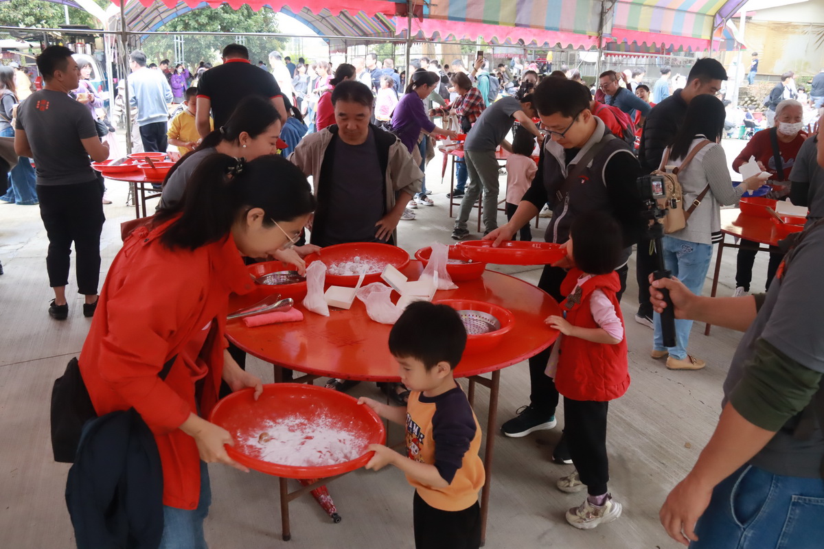 下午限量180組的親子搖元宵更是經典活動,許多家庭是三代或親友團報名來參加,自己動手做再帶回家分享特別有風味,很多人不知原來元宵製作需如此繁複;另一旁則發送出1,500份花生芝麻餡元宵供遊客呷平安。還有氣球達人發放不同造型的氣球最吸引小朋友索取。另一區胖卡車市集帶來美食讓大家食指大動。