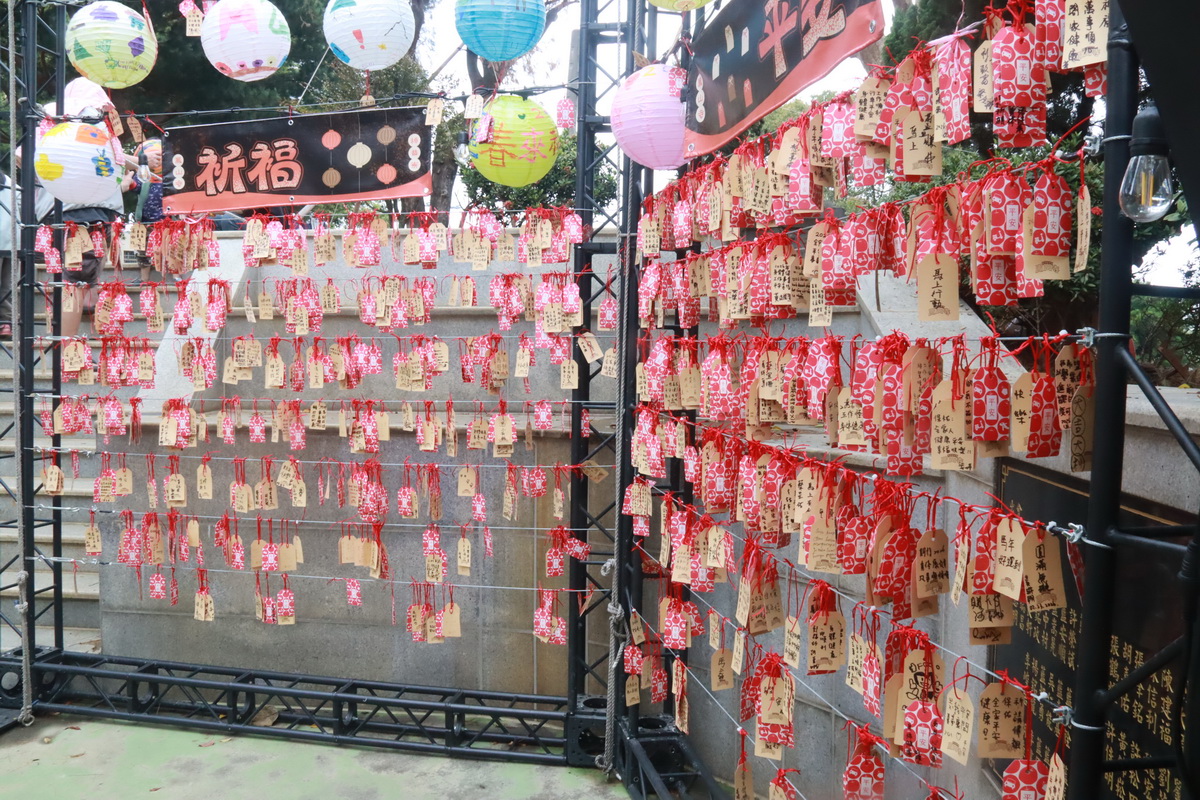 各地信眾到鳳山寺參香禮拜後,還可寫下許願小卡片懸掛在寺廟旁燈海的迴廊邊,期待今年馬上有福有財馬年行大運。