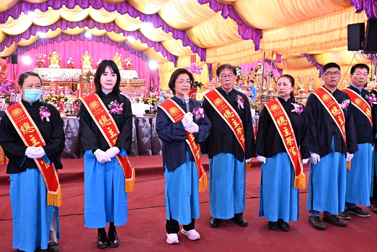 縣長王惠美表示,感謝玄門總會各位師兄師姐的付出,在大年初九天公生至元宵節這段期間,舉辦法會為眾生消災祈福。每天有許多信徒前來敬祀,向神尊稟報心中訴求,相信在眾神佛庇祐下,一定會讓大家福來滿溢。並感謝士農工商各界及信徒的大力支持,有錢出錢、有力出力,一同共襄盛舉,引領縣民生活更美好幸福,祝福大家在新的一年都平安圓滿。