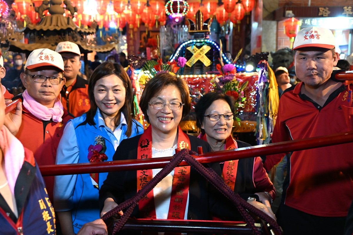 縣長王惠美表示,文德宮供奉的福德老爺,是全國唯一頭戴官帽的土地公。每年參與迎燈排活動,都能深刻感受到文德宮主委帶領的團隊以及公所團隊的用心,活動一年比一年更精采盛大。白沙坑迎燈排源於清道光年間,相傳花壇文德村子弟曾維楨入翰林院為官,皇帝感念其孝心,特准其故鄉白沙坑於每年元宵節比照京城規制迎燈祈福,代代相傳至今已有198年歷史,並於2008年登錄為彰化縣無形文化資產。為讓文化向下扎根,每年學校都會帶領孩子一同製作代表學校特色的燈排,讓下一代在親身參與中認識傳統、體驗文化,延續珍貴的歷史資產。俗話說:「拜土地公,身體會健康;拜福德老爺,大家會很好額(有錢)。」祝福大家都能求得健康與財富。
