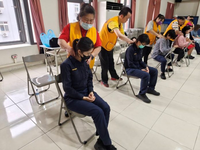 許多女性同仁「硬梆梆」的肩頸在師傅們的妙手下獲得元氣恢復,讓她們頻稱「真是小確幸的時光」。