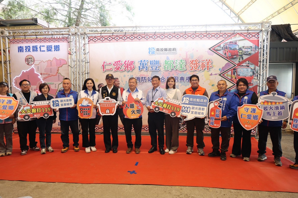 副縣長王瑞德9日前往仁愛鄉萬豐村風雨球場,主持仁愛鄉萬豐、發祥、都達消防站聯合啟用典禮,與消防署副署長簡萬瑤、縣議員林庭秝、原民處長林婷玉、消防局局長陳興傑及多位村長一同啟動3村消防站,為仁愛鄉部落安全增添生力軍。