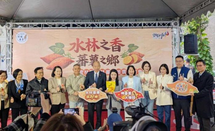 為加強推廣水林蕃薯產業,並行銷水林蕃薯品牌,13日上午由雲林縣政府、水林鄉公所及水林鄉農會一同北上立法院舉辦「水林之香·蕃薯之鄉」雲林縣水林蕃薯推廣記者會,多家蕃薯食品加工業者也特地北上宣傳自家商品,不僅有張嘉郡委員、丁學忠委員、許宇甄委員、蔡春綢委員等雲林立委大力支持宣傳,立法院長韓國瑜更率多位委員及立院同仁到場力挺,還有旅居北部的雲林同鄉們一齊共襄盛舉。水林鄉農會也自創「地瓜大福」創意料理提供與會嘉賓品嚐,與會人員讚不絕口,一致認同水林蕃薯香甜好滋味,共同行銷雲林水林蕃薯。