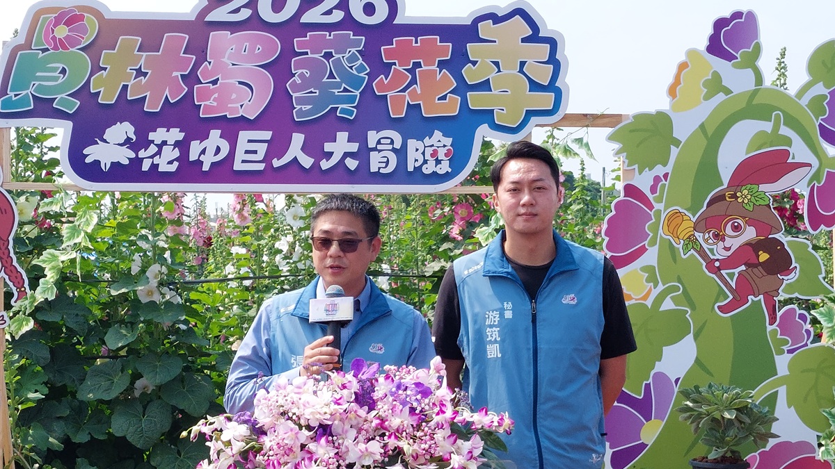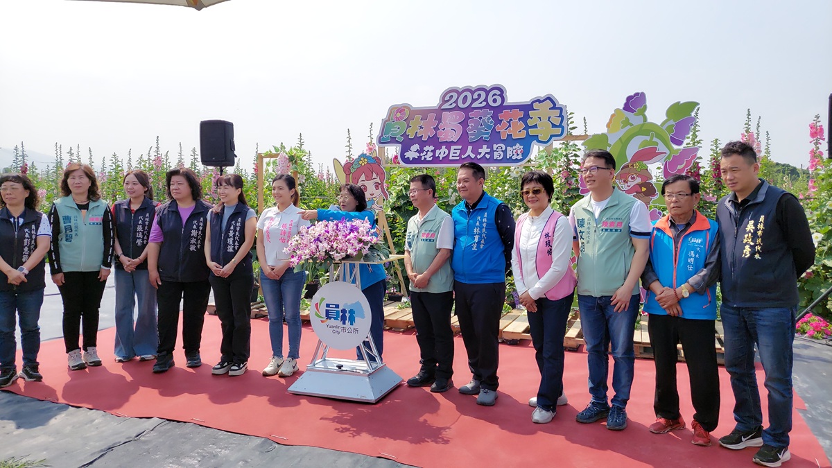 員林市公所於今(19)日在員林南區公園的蜀葵花田,舉辦「2026員林蜀葵花季──花中巨人大冒險」開幕宣傳記者會,由員林市代理市長賴致富帶領,與彰化縣政府機要祕書張建豐、秘書游筑凱、賴沛然、彰化縣政府城市暨觀光發展處行銷推廣科科長丁宜君、參山國家風景區管理處秘書洪英逸、縣議員凃俊任、劉惠娟、張錦昆等,與員林市民代表會各代表與里長,共同迎接春天的到來。