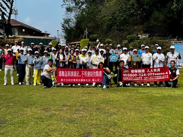 揮桿不只做公益,還能守護荷包!為深化市民防詐意識,臺中市政府警察局霧峰分局於24日受邀參加由中美國際同濟會舉辦的「興太美慈善盃高爾夫球賽」。在霧峰高爾夫球場的綠茵上,球友們不僅揮出愛心與活力,更在警方的宣導下,築起一道堅實的詐騙防護網。
