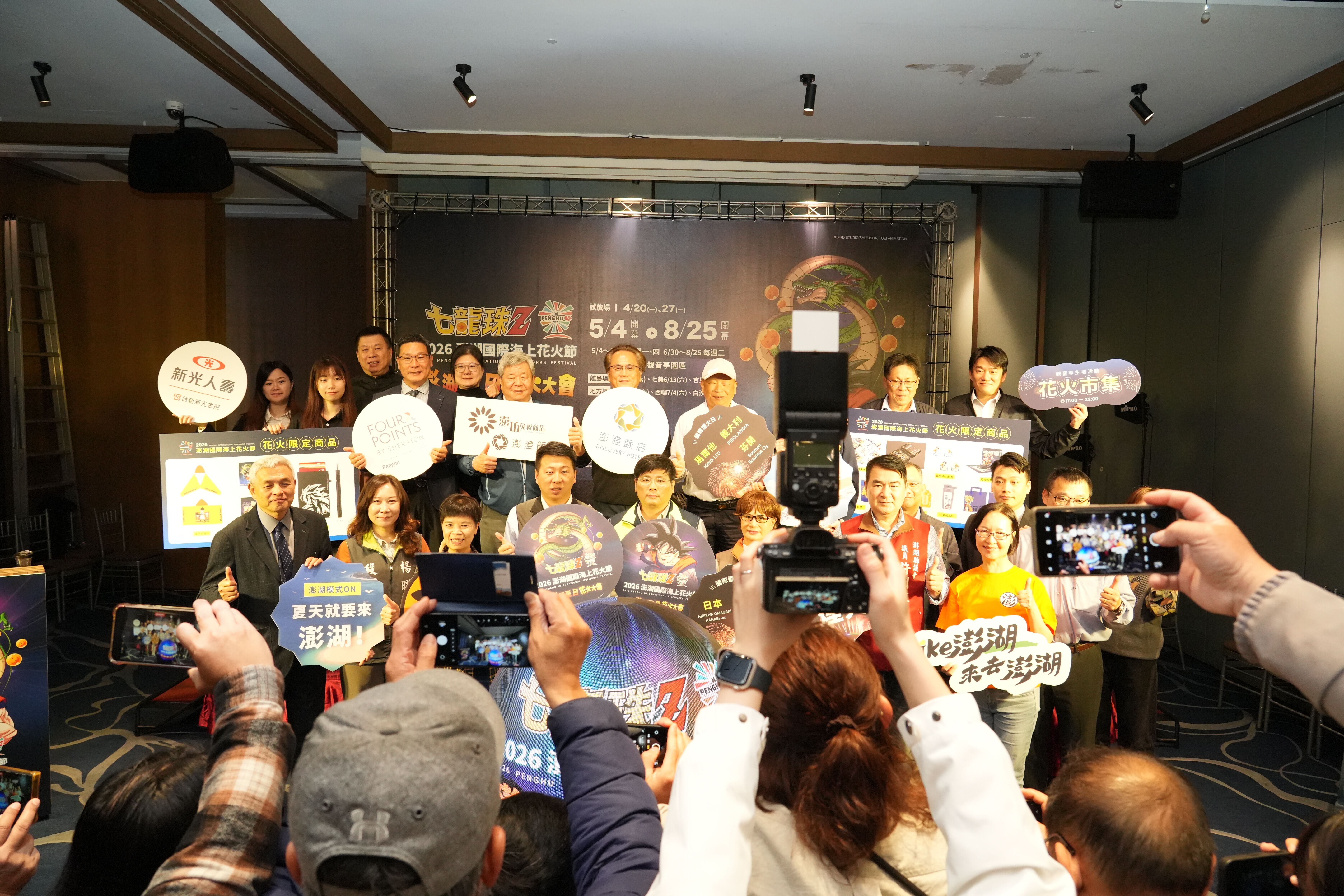 「2026澎湖國際海上花火節」結合知名動漫IP《七龍珠Z》,將於5月4日在馬公觀音亭園區盛大開幕。澎湖縣政府今(20)日於澎澄飯店舉行澎湖場記者會,公布今年花火節期程、主題亮點及系列周邊活動等內容,邀請國內外遊客今夏齊聚澎湖,賞花火、遊菊島,感受澎湖夏季最具代表性的觀光盛會。