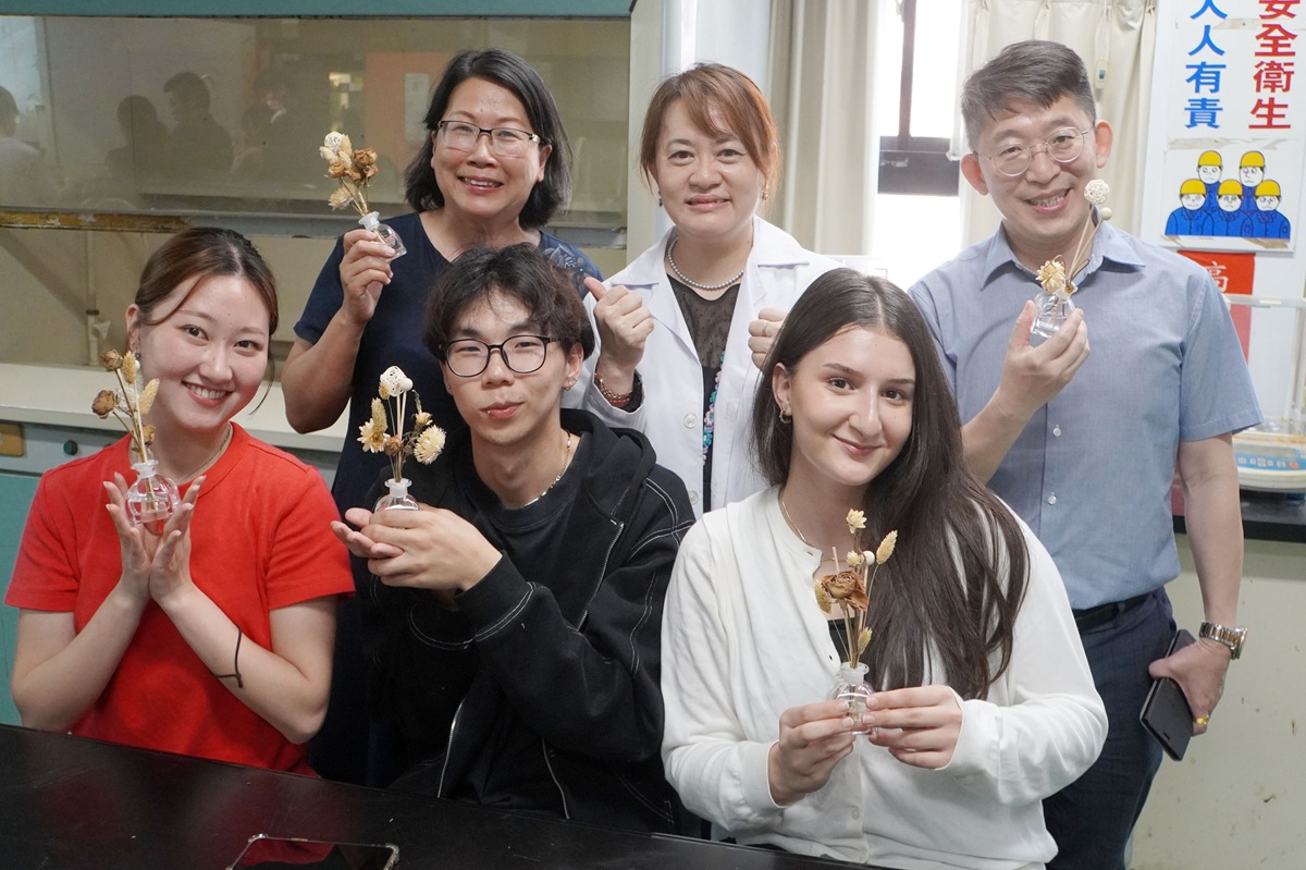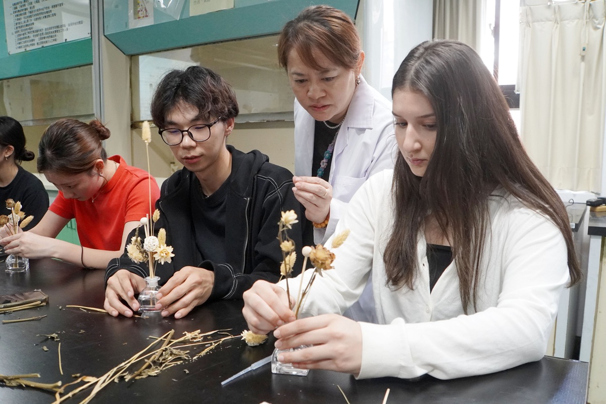 為協助國際學生體驗台灣文化與節氣之美,大葉大學華語教學中心邀請藥用植物與食品保健學系副教授張淑微,帶領來自日本、法國、印尼、越南、馬來西亞、巴基斯坦及香港等地的國際學生,參與「春分擴香花瓶DIY」活動,透過香氛手作認識春分節氣意涵,感受台灣校園的綠色文化特色。