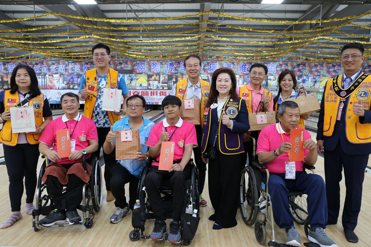 保齡球錦標賽得以順利推動,除感謝社會各界正能量的匯聚,更要特別鳴謝國際 獅子會的長期支持,延續自第24屆、25屆賽事二位前總監相繼耕種福田之精神,本屆由國際獅子會300D-1區2025-2026 年度蔡沼玲總監、曾上能榮譽副總監、張恊章第三專區主席共同率領全體獅友踴躍贊助,更在活動中邀請獅友參與配對賽事,透過與傷友並肩組隊,近距離感悟脊損者「愛運動、動無礙」的生命熱力。