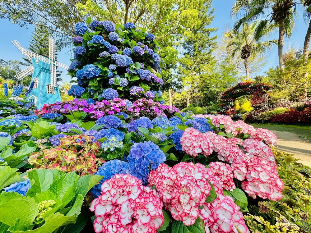 而位在卓蘭鄉的花露農場以四季花卉景觀與香氛植物為主軸,在自然與美學交織的場域中打造具有療癒感的休閒空間。園區中以花卉為主體呈現歐式庭園的繁花似錦樣貌,業者也設計出從視覺景觀延伸至繡球花造型霜淇淋的味覺體驗以及植物精油的嗅覺體驗,不同於一般單一感官得旅遊享受。