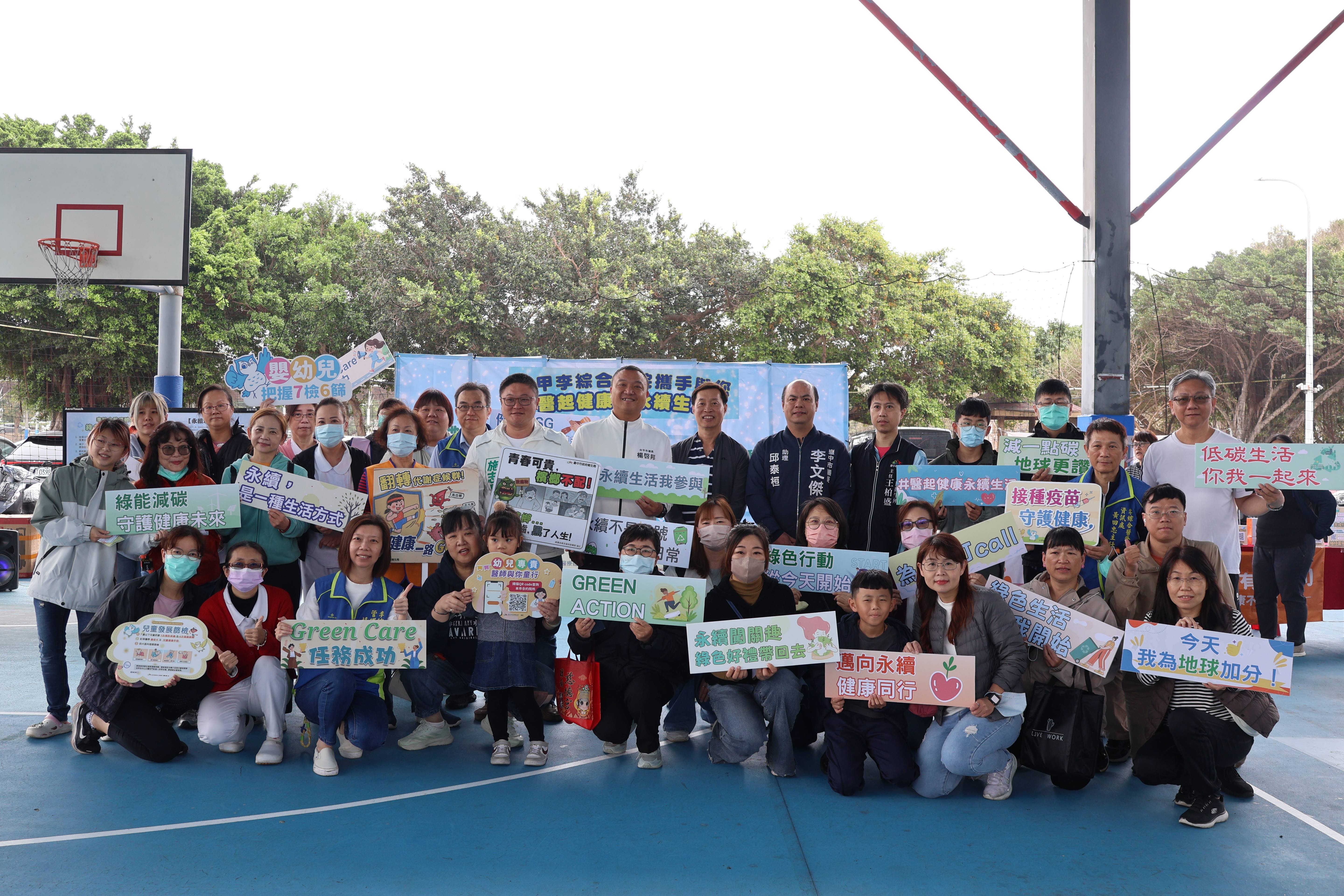 大甲李綜合醫院昨日在大甲體育場舉辦「醫起健康、永續生活」活動,設計5個闖關活動,包括愛護森林、珍惜水資源、分類廢棄物、清除海洋垃圾、認識聯合國17項永續發展目標SDGs等關卡,也設置電子簽名看板,呼籲民眾從生活中做起,落實愛惜水、電等各種資源,同時邀請在地商家擺攤販售在地美食。