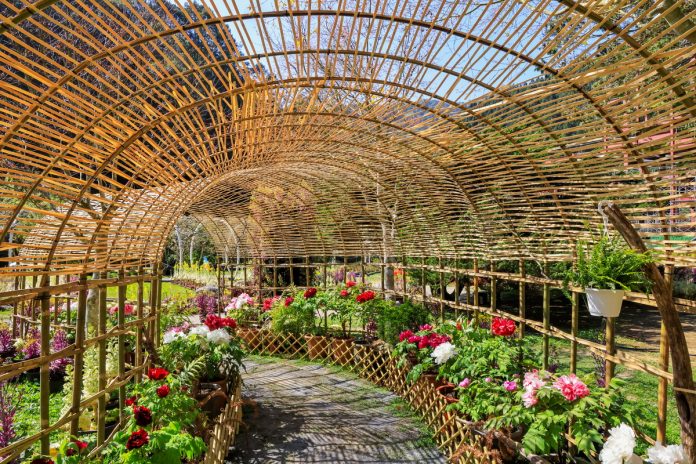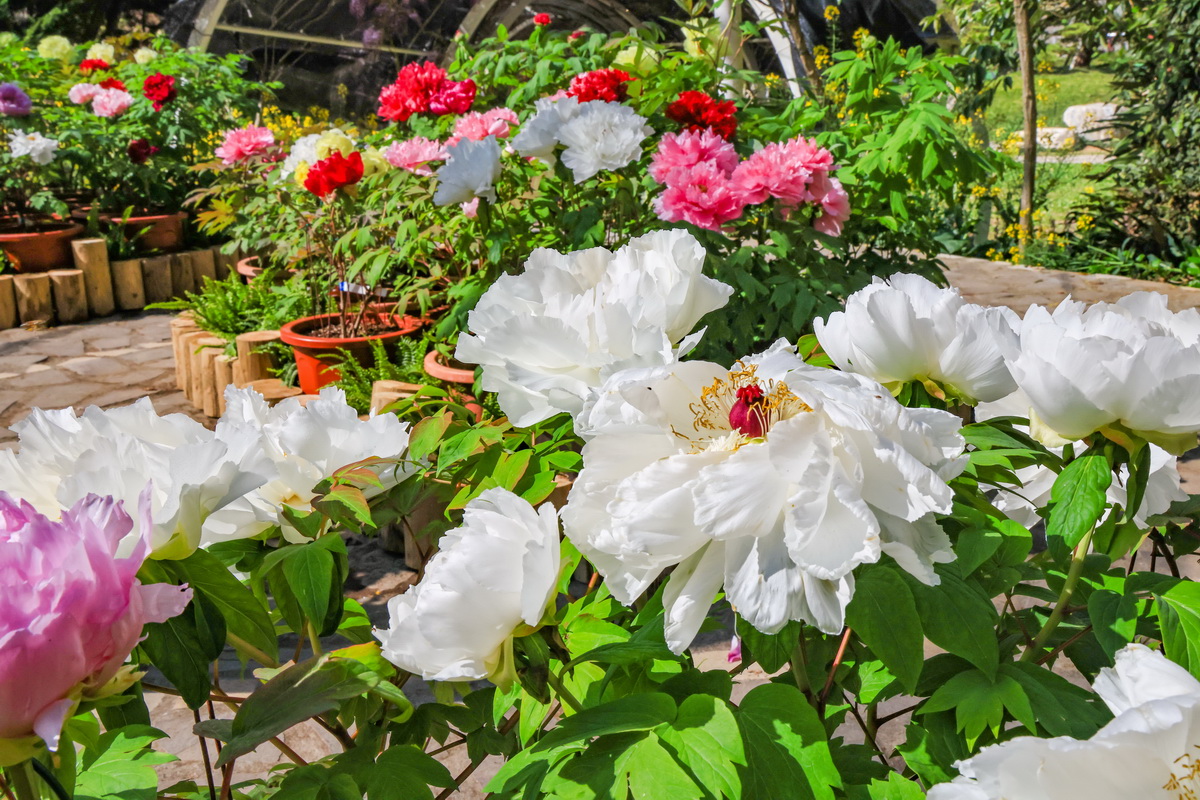 園方表示今年因花卉中心室內展場進行改建工程,園區首度將牡丹花全面移至花卉中心戶外區域展示,且細心規劃於戶外空間架設竹編遮陽廊道與遮蔽傘,兼顧日照調節與遊客動線,提供嬌貴的牡丹花在戶外陽光下綻放,創下歷年最具變革的一次展出。