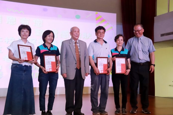 另頒贈感謝狀予慈濟醫療財團法人附設台中慈濟護理之家,未來針對有意願至該單位服務的五育高中照服科新生,每人三年共9萬元助學金。學校並頒獎狀感謝資深教職人員的貢獻。表彰2025年就讀臺科大的五育校友徐鐿庭,榮獲臺中市金照獎長照新星獎第二名。
