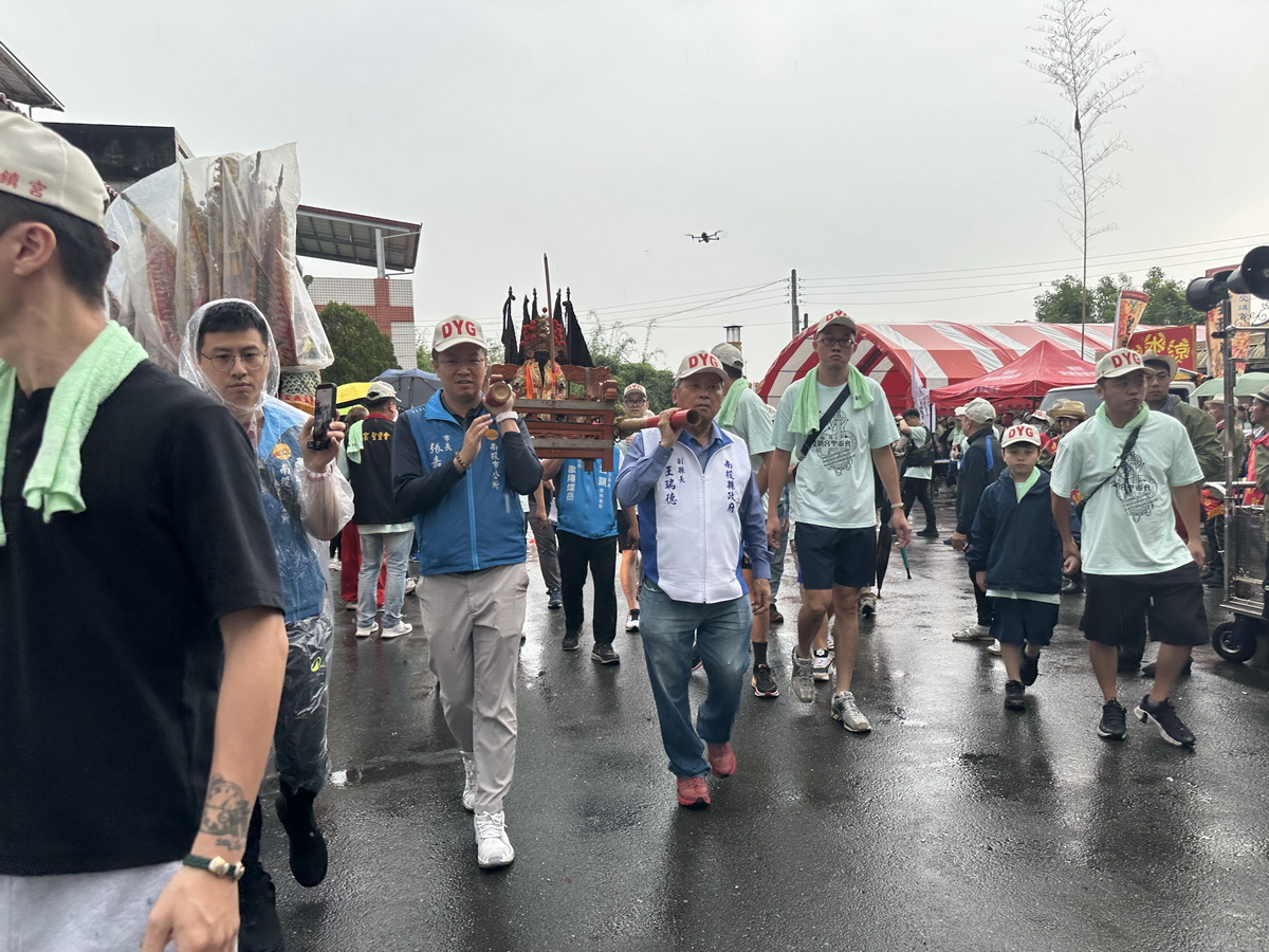 清晨7時王副縣長、市長張嘉哲、縣農會總幹事曾明瑞、受鎮宮總執事縣議員洪明科、委員、立委馬文君與游顥助理等,準時點燃起馬炮,王副縣長等人扛起神尊出發。