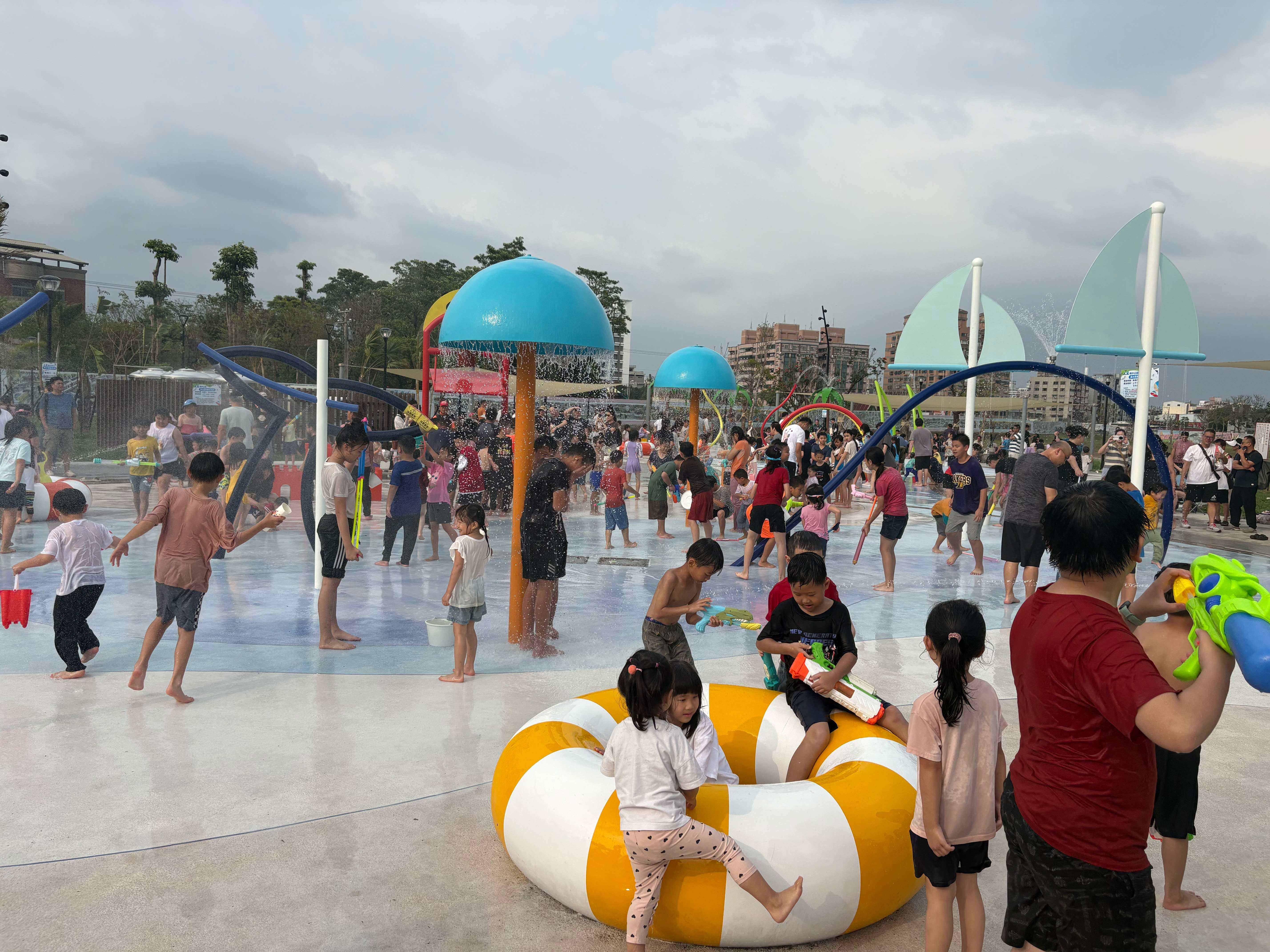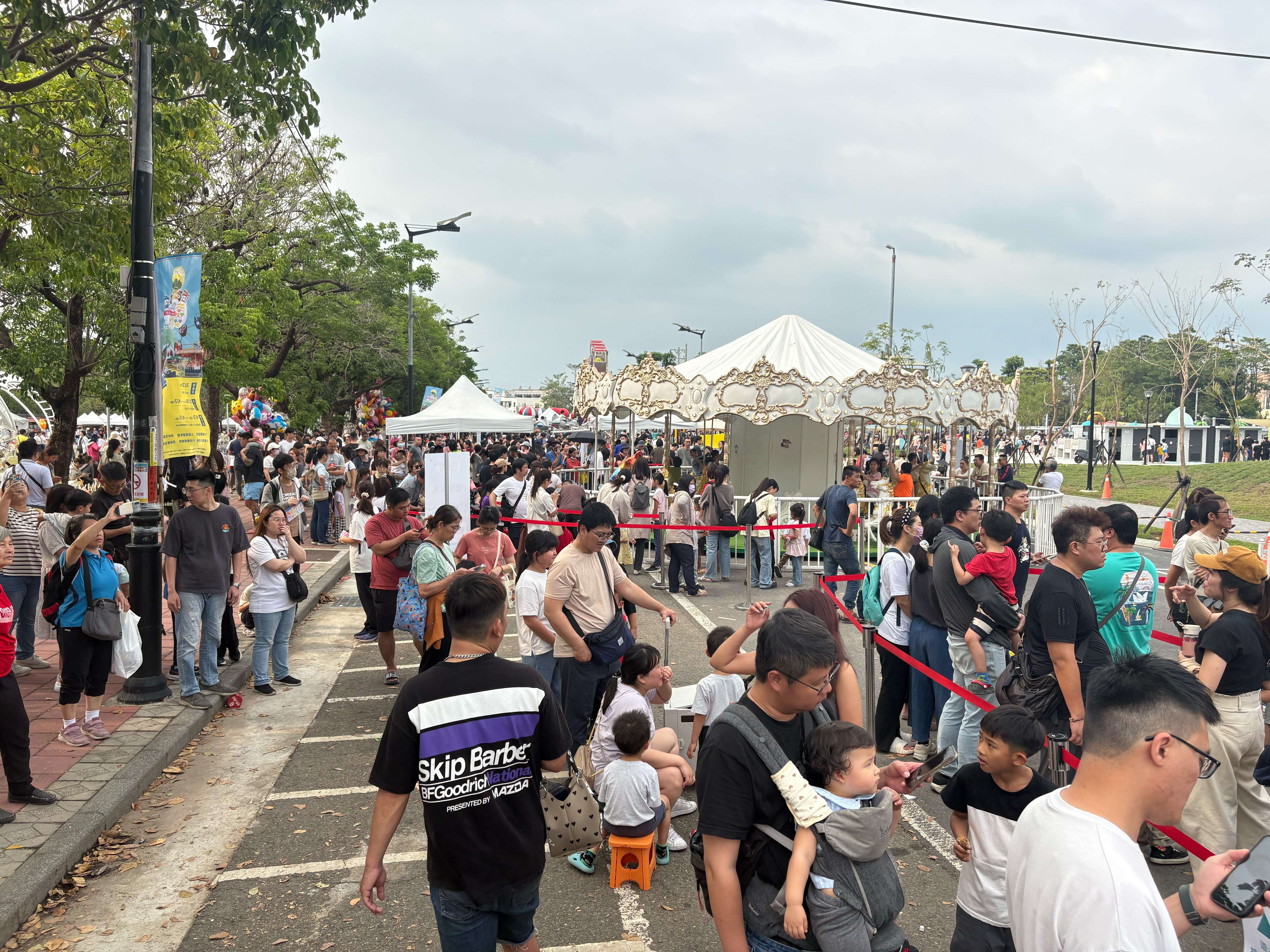 張麗善縣長表示,膨鼠公園搖身一變成為充滿歡樂的兒童樂園,現場設有氣墊城堡、摩天輪、旋轉木馬、小火車、海盜船、炫風飛車、水泥扭蛋車、搖擺飛飛、漂浮熱氣球及飛天魔椅等大型遊具,處處洋溢親子歡笑聲。