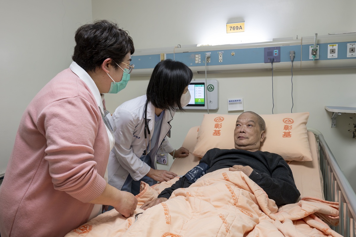 長期照護謝先生的彰基七三病房陳君玲護理長、林佩青專科護理師指出:謝先生中風後行動極度不便,頻繁的回診對家屬來說是一大考驗。我們團隊深知弱勢病患的困境,因此協助他解決來醫院打化療的時間與動線安排。同時,我們也積極協助病患妥善運用台灣健保可利用的資源,減輕他們的醫療費用壓力。