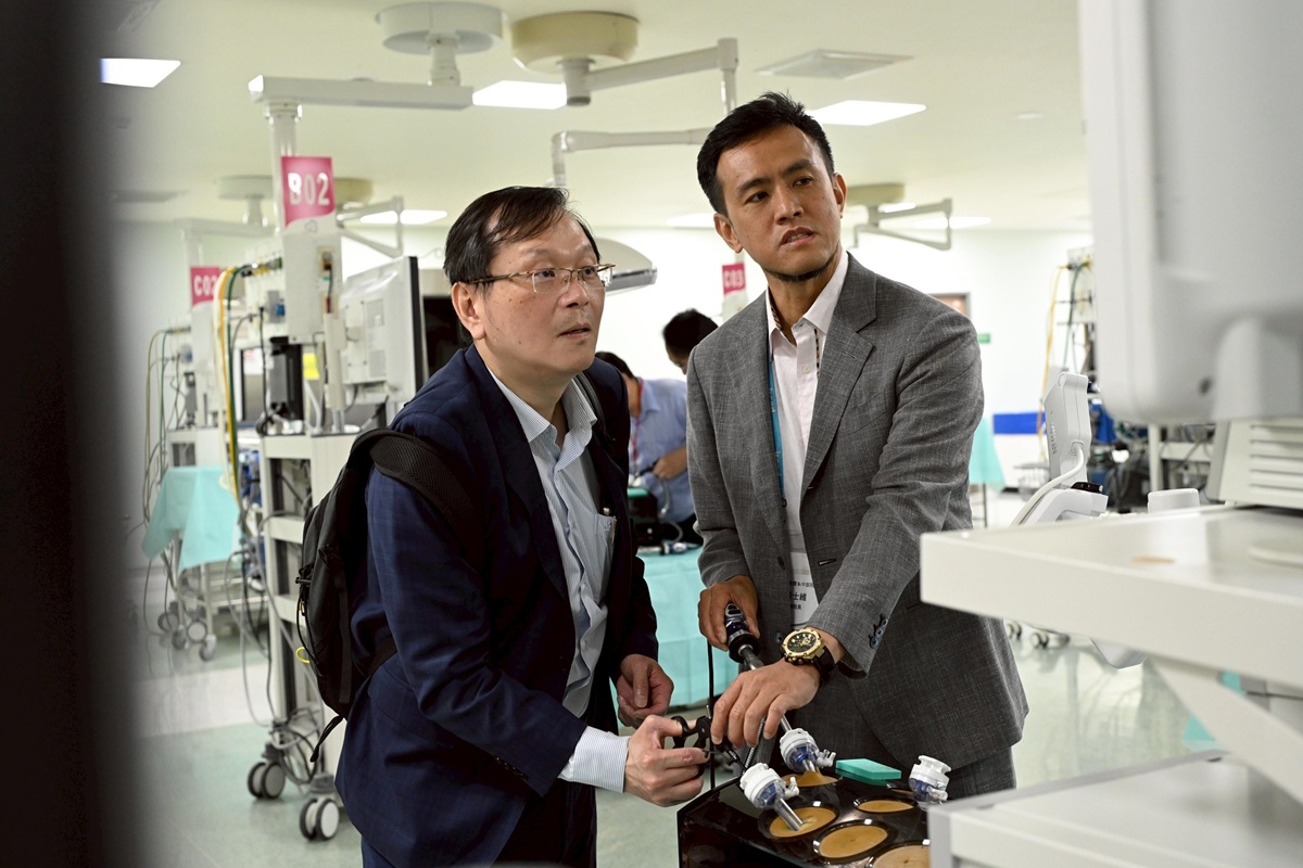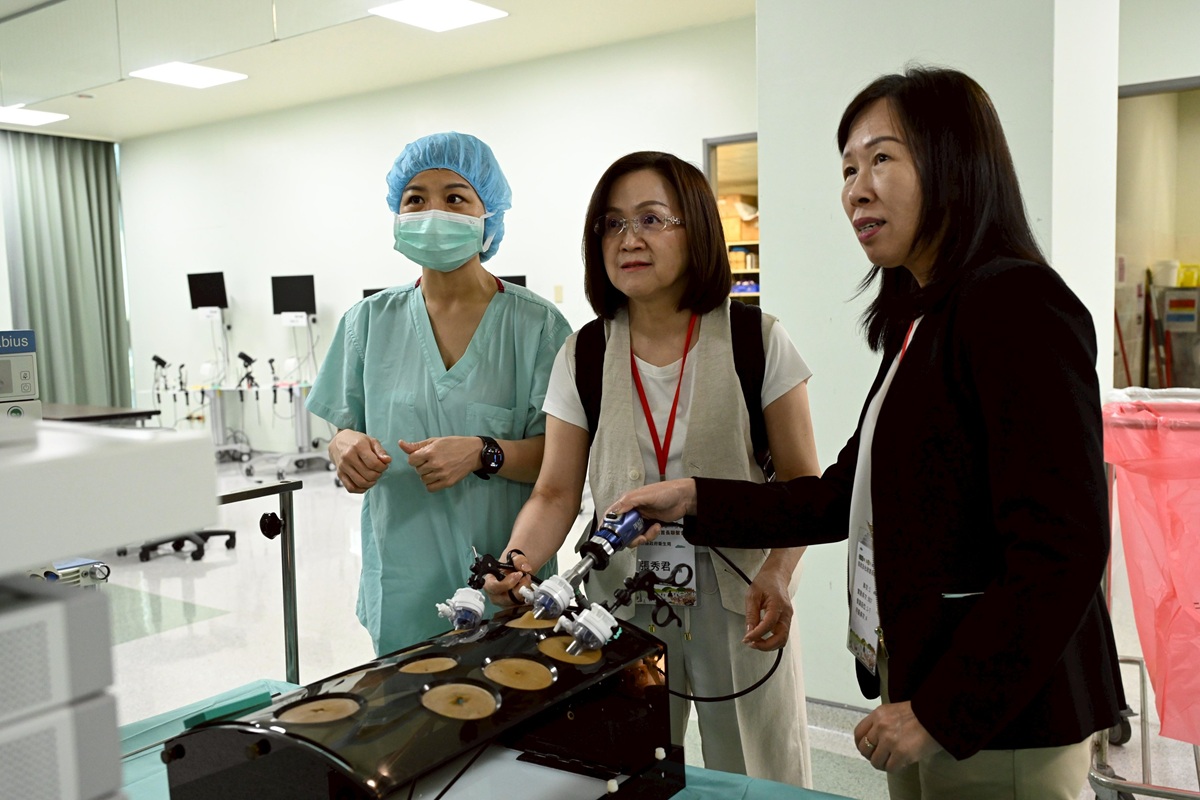 參訪行程首站到秀傳亞洲微創手術訓練中心,並結合實作體驗課程,讓各縣市衛生局與社會局主管親身操作微創手術模擬設備,深入了解先進醫療技術應用,還有參觀達文西及HUGO手術機器人的訓練室。多位貴賓表示,中心設備完善、教學系統完整,從基礎到進階的課程皆具國際水準,尤其強調臨床與教學並重,對台灣醫療人才培育具有指標性意義。