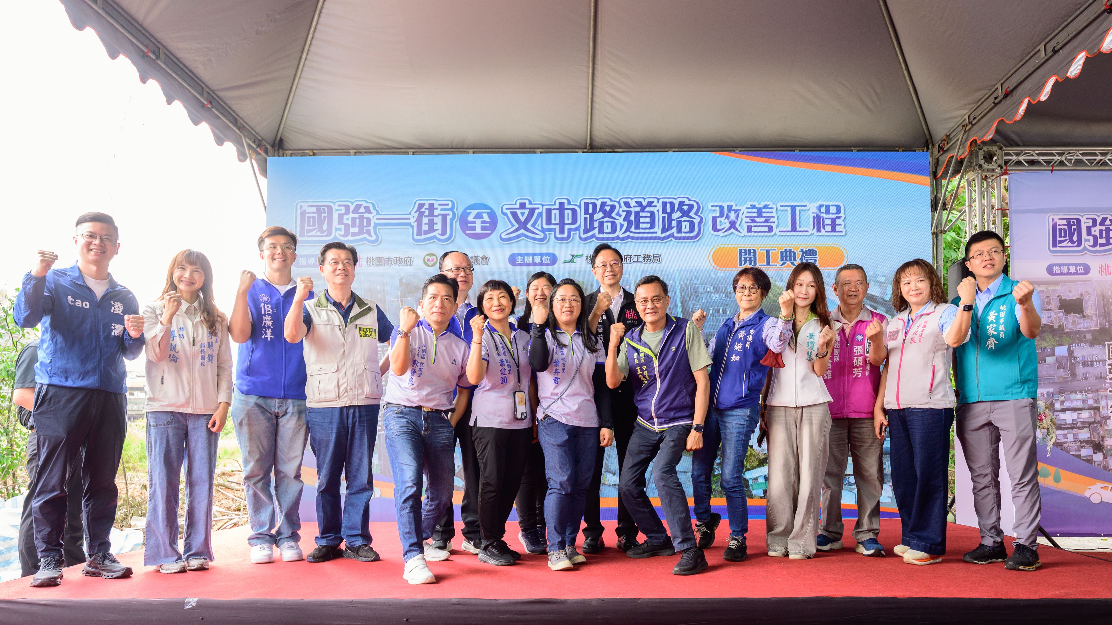 桃園市長張善政今(14)日上午前往桃園區,出席「桃園區國強一街至文中路道路開闢工程動土典禮」。張市長表示,本案工程總經費約7,700萬元,施工期約9個月,預計於明(116)年1月完工通車。完工後將串聯國強一街、文中路及周邊上海路、龍安街路網,改善當地壅塞情形,提升整體交通通行效率。