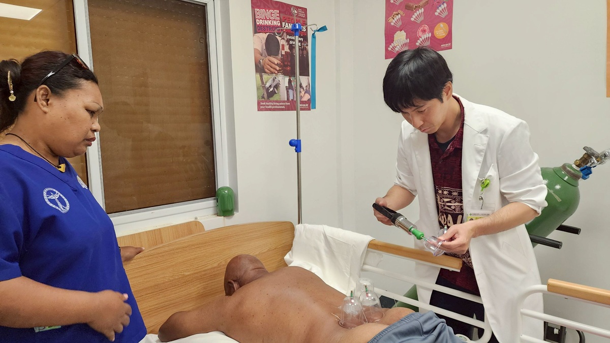 秀傳邱伯恩醫師表示,此次義診除提供臨床服務外,也與Belau National Hospital(BNH)復健科團隊進行專業交流,分享針灸在復健醫療中的應用經驗,並探討未來在人才培訓、臨床技術導入及跨國醫療合作等面向的可能性。透過實地互動與經驗交換,不僅提升當地醫療人員對傳統醫療的認識,也為雙方建立更穩固的合作基礎。