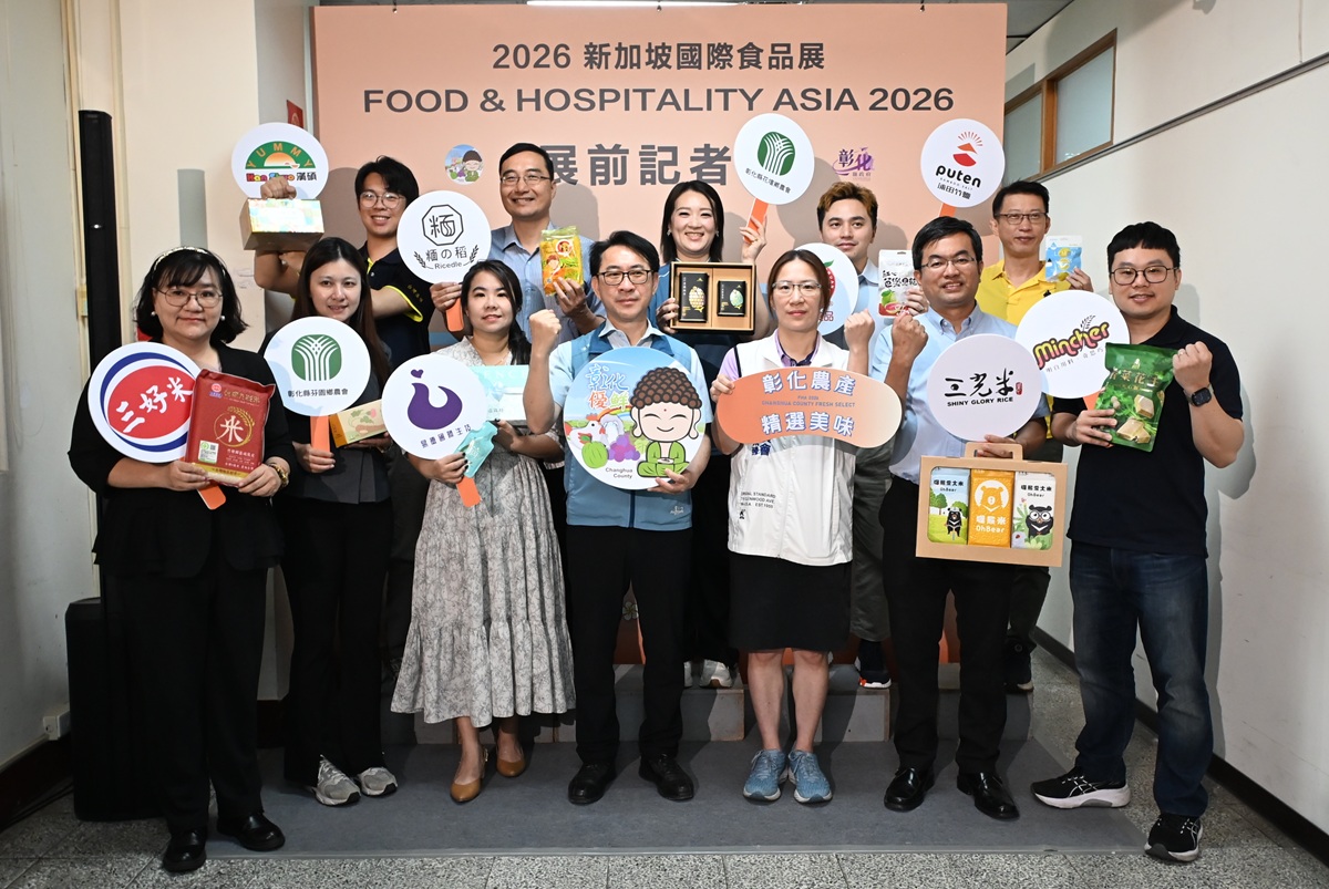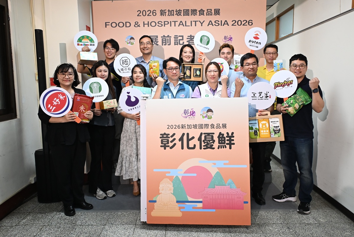 彰化縣政府將於4月21日至24日率團參與「2026新加坡國際食品展」,該展為亞洲具指標性的食品展會,每年匯聚全球食品業者、通路商及專業買主,是拓展國際市場的重要平台。今(15)日於縣府六樓咖啡藝廊舉行展前記者會,由農業處長郭至善代表彰化縣長王惠美,宣示彰化優質農產與食品航向國際市場的強大決心。縣府整合10家在地優質業者,打造「彰化優鮮館」,以整體品牌進軍海外,充分展現彰化特色。