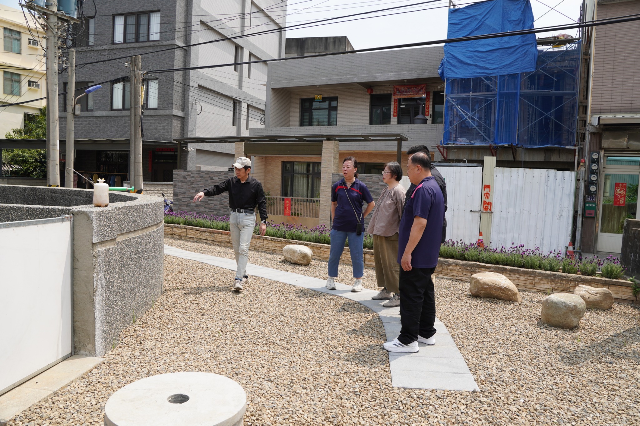 都發處長蘇文彬表示,期中訪視的目的不僅在於檢視計畫進度,更著重於「陪伴」社區面對實作過程中的各項挑戰。從空間尺度拿捏、材料選擇、施工方式,到社區人力分工與後續維護機制,皆可能在實際執行時產生新的狀況與需求。透過專家學者現場討論與建議,協助社區釐清問題、調整方向,使原有規劃能更貼近現場條件,進而發展出更具可行性與延續性的操作模式。