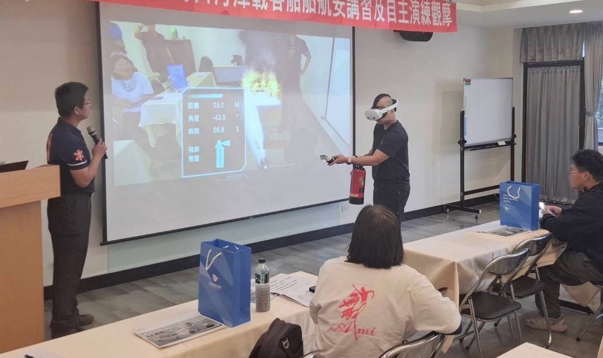 本次講習及演練內容豐富多元,除由專業講師講授航行安全管理重點、緊急應變流程外,亦強調航前點檢、救生設備檢視及營運安全管理等實務重點;並邀請南投縣政府消防局日月潭分隊協助講解船舶滅火概論」及「急救方式及通報程序」,同時透過VR模擬情境與實地操作演練,進行船舶火災初期處理、乘客落水救援、CPR急救等項目,讓參與業者從理論到實務完整學習,強化第一線應變能力。活動於日月潭教師會館及水社碼頭辦理,過程逼真、流程嚴謹,獲得與會人員一致肯定。