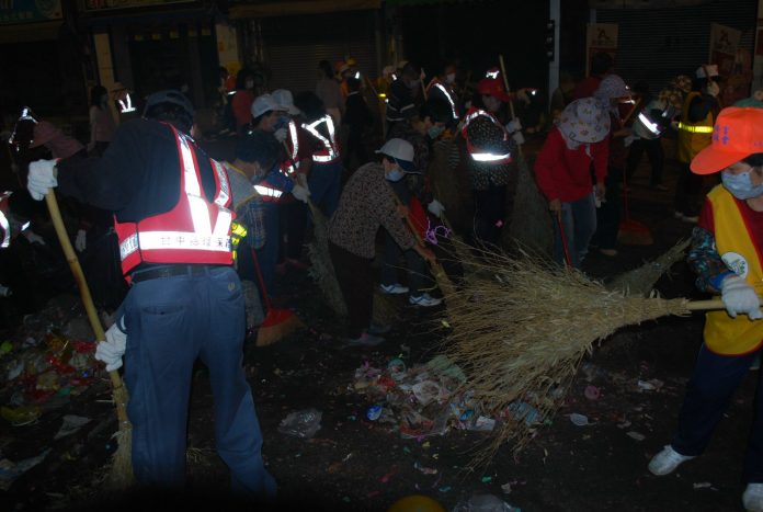 大甲媽祖九天八夜遶境進香十七日深夜起駕,數十萬國內外信眾熱烈參與,送駕激情過後,遺留的龐大垃圾,十八日凌晨大甲環保志工、慈濟大甲分會等二十七個志工團體、近千人出動清掃,一個多小時就恢復原有環境,區長顏金源表示,幾年來大甲媽祖的起駕及回鑾,公所都會提前招集各環保志工團體討論,迎神後市區清潔問題,幸垃圾資源分類的大力宣導得宜,當天在地上的垃圾量明顯銳減,確實節省了很多的打掃時間。