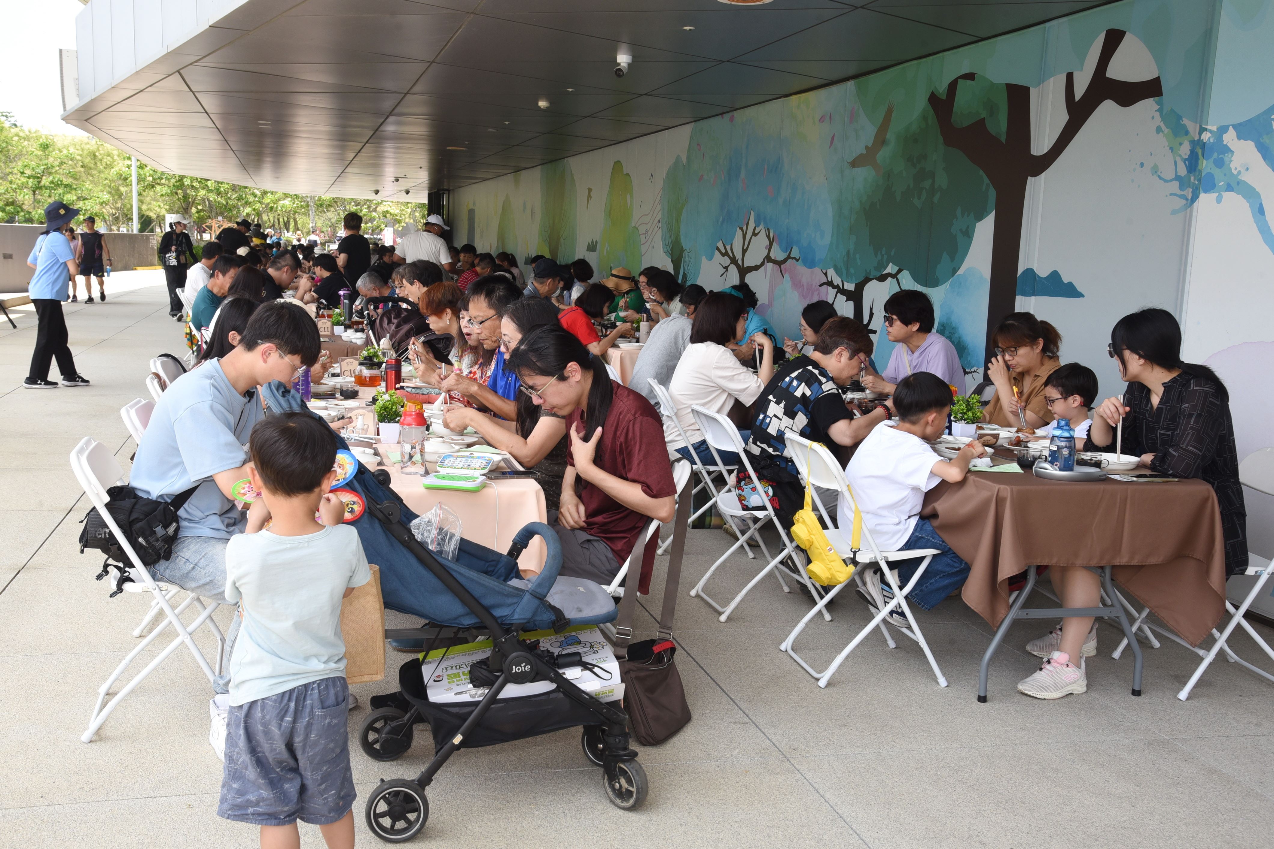 有了多層次的味覺體驗,也要滿足視聽感官。舞台區規畫跨族群音樂演出,邀美籍歌手賈斯汀演唱標準而流利的客家歌曲,並由原住民、閩南與客家歌手接力演出,從多元文化視角詮釋客家音樂之美,打造一場融合飲食、音樂與語言文化的五感饗宴。這場別具巧思的「時空尋味」桐花宴,還吸引在臺港人組團30人參加,賞桐、美食、音樂一次到位。