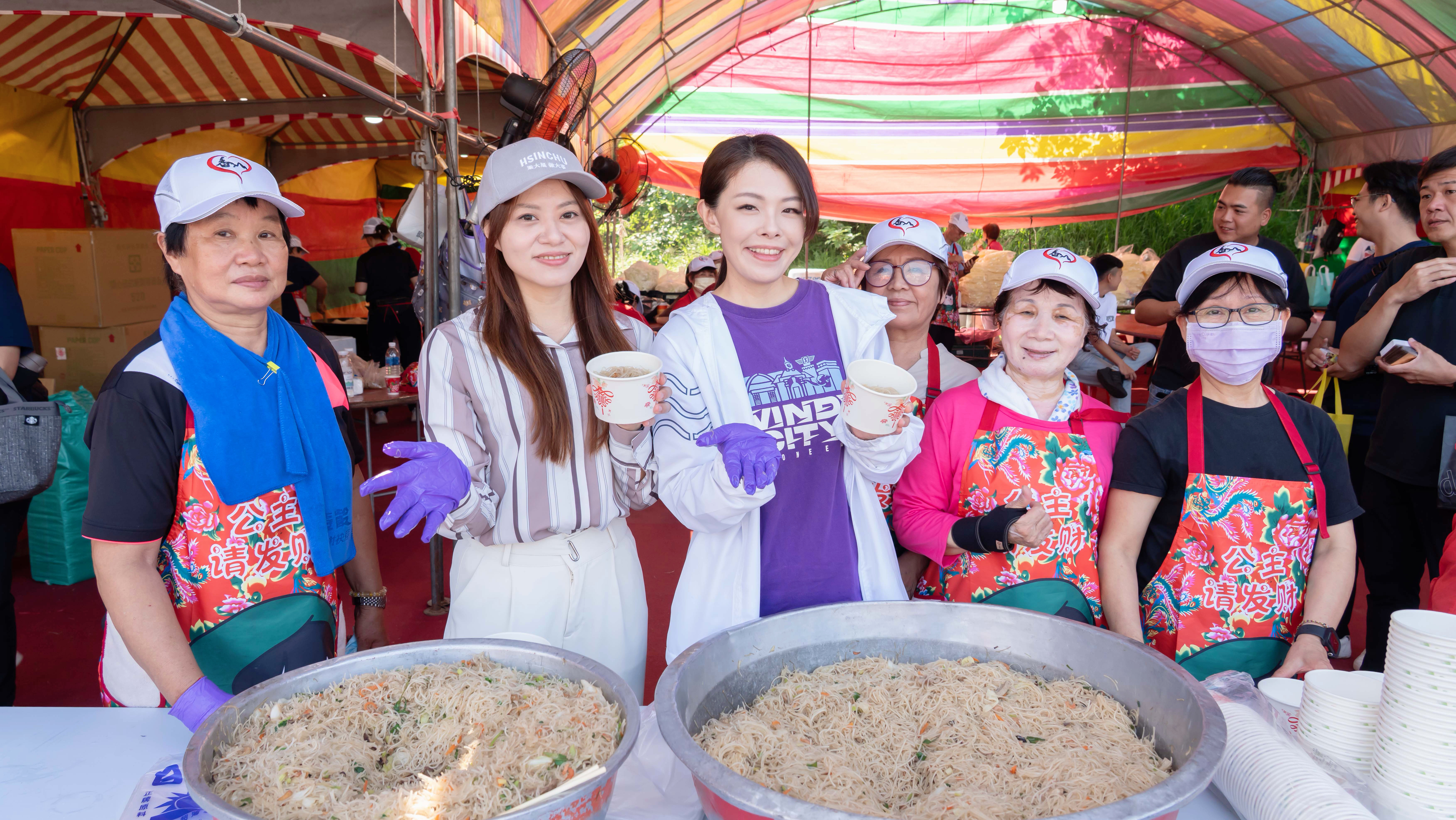 高市長表示,白沙屯媽祖進香展現了台灣堅定的民間信仰與深厚的人情味,看著信眾們不辭辛勞地跟隨媽祖腳步,內心非常感動。今日準備了最道地的新竹特產貢丸湯與炒米粉,就是希望讓長途跋涉的信眾們能感受到竹市的溫暖,將這份平安與福氣傳遞下去,也特別感謝新竹市風廚師餐飲觀光發展協會熱情支援,讓應援行動更加順利圓滿。