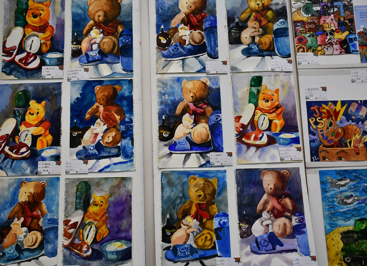 本次展覽為林晉任、王士柏兩位指導老師帶領下的藝術結晶。展出作品琳瑯滿目,從細膩的素描、豪邁的水墨,到充滿張力的平面設計與漫畫,無不展現孩子們扎實的基本功。最令人驚豔的,莫過於他們對媒材的創意轉化:廢棄紙箱在巧手下化身為矯健的駿馬;鐵絲與超輕土交織成充滿韌性的「生命之樹」;甚至連傳統民間工藝「剪黏」,也在孩子們的手中煥發嶄新風貌。
