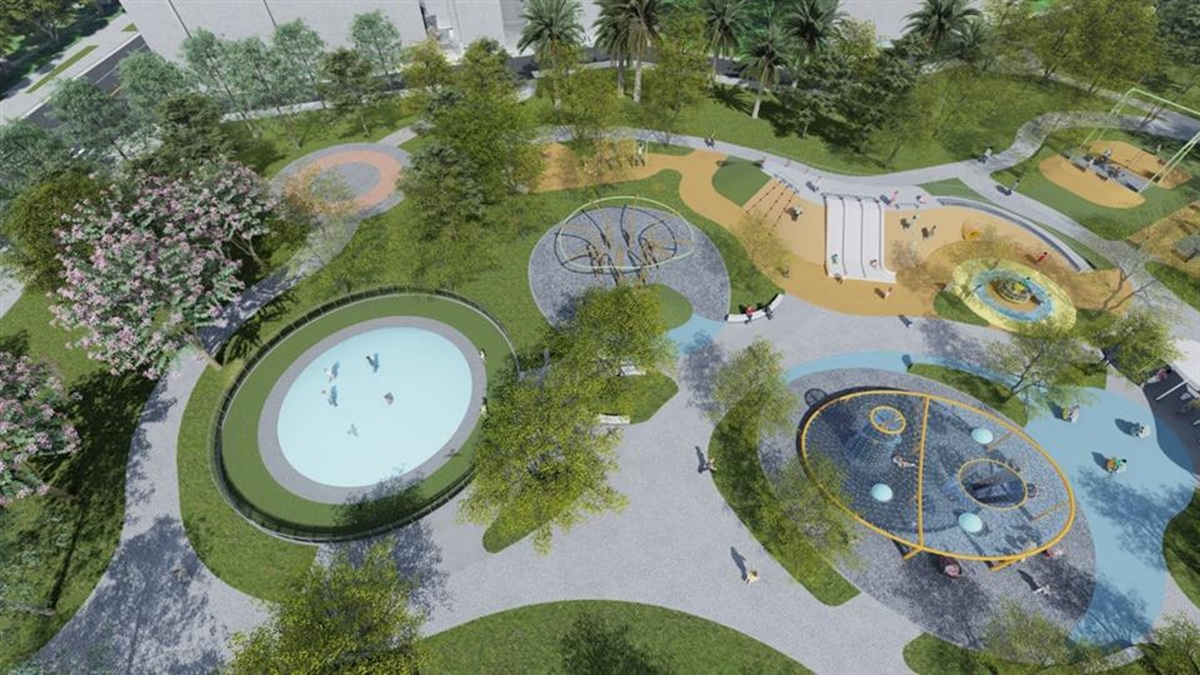 縣長王惠美表示,在設施規劃上,本次納入多項具備挑戰性與趣味性的設施。包含去年參訪丹麥後引進的大型立體彈跳床「雲朵蹦丘」,其外型潔白如雲,能容納多名孩童盡情跳躍、釋放活力。此外,場內配置滑索、鞦韆、爬網、搖搖馬及旋轉盤等多元遊具,能促進孩子感官發展;同時針對中高年級孩童規劃「體能挑戰區」,結合攀爬、平衡與擺盪等遊具,讓孩子在自然中鍛鍊自我。另外,針對全齡共享目標,園區內亦增設社區型「健體區」,供長輩及居民運動交流。景觀塑造上,入口處將設置活潑親民的「萌鹿寶寶」裝置藝術,展現遊戲場的獨特形象。