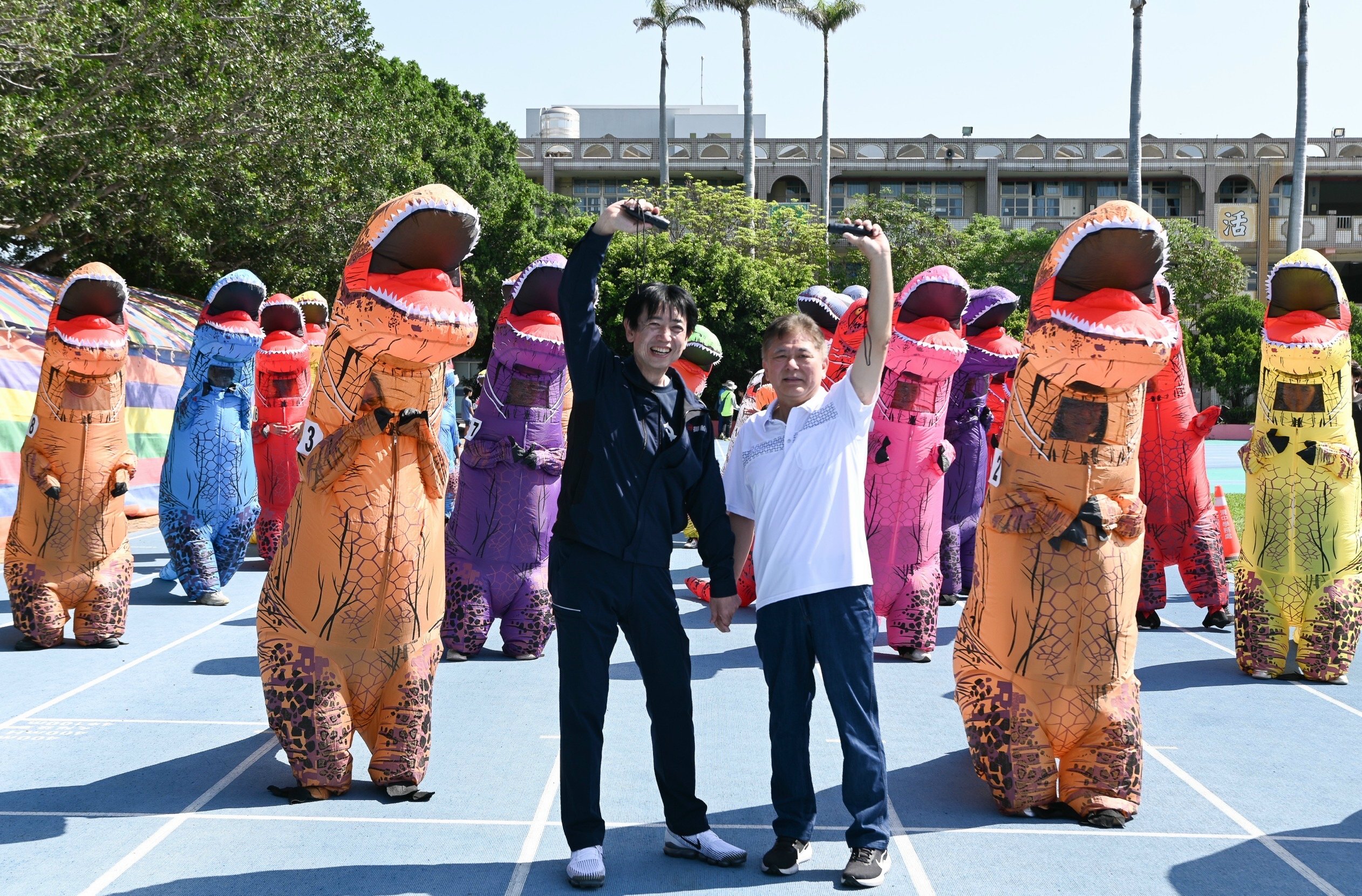 清水區公所指出,今年活動最大亮點在於將體育嘉年華升級為國際文化體育交流盛會,呼應市府推動「酷城市、酷運動」政策願景,並邀請素有「恐龍之城」美譽的姊妹區町-日本熊本縣御船町參與交流,並引進當地超人氣「恐龍們的運動會」,成為全場焦點;本日活動現場超過40隻大小恐龍熱鬧登場,參與60公尺賽跑、滾大球、投籃及搶肉食等趣味競賽,結合運動與創意,吸引現場上千名民眾共同參與,歡笑聲此起彼落,成功營造親子同樂、全民共融的熱鬧氛圍。