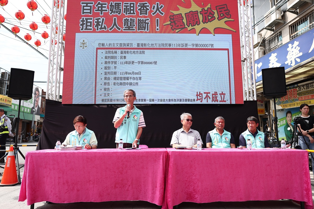 延宕多年的田中乾德宮管理權歸屬爭議,近日(4月8日)迎來重大法律突破。依據台灣彰化地方法院 113 年度訴更一字第 000007 號民事判決確認:[民國107年12月23日由鄭俊雄所召開之「第一屆第一次信徒大會」決議及選舉結果「均不成立」,田中鎮公所及依據原有暫行管理組織章程之規定所成立的新任管理團隊具備合法接管權利,今日於記者會現場嚴正聲明,未來將依照司法裁定正式進駐,並針對廟產、帳目展開全面清查,強調任何阻礙移交之行為均屬非法佔用,呼籲相關人士尊重法治,將百年鎮廟還給全鎮信眾。」