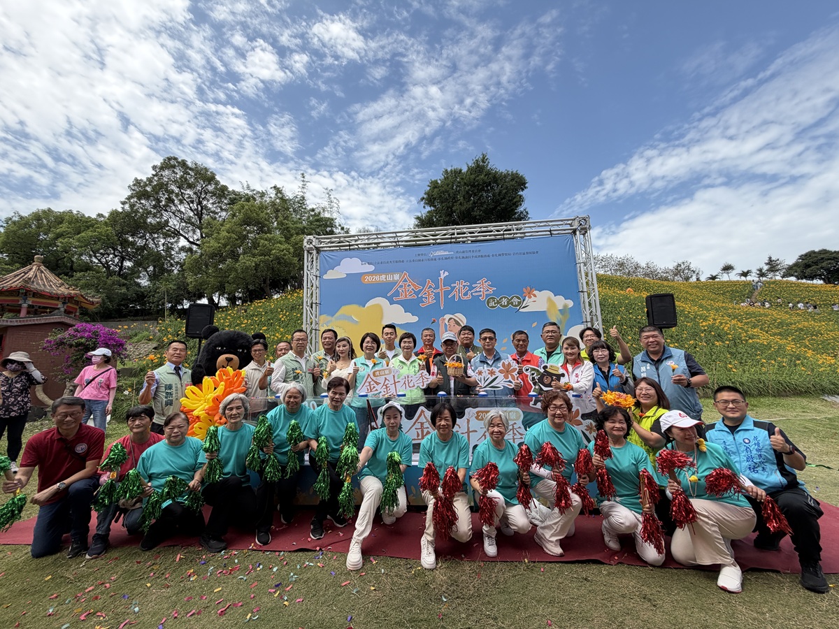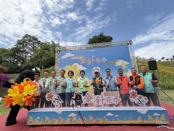 彰化花壇虎山巖金針花爆開,連日賞花遊客湧入,交通部觀光署參山國家風景區管理處與虎山巖寺管委會今(28)日舉辦金針花季記者會,在超過20萬朵金黃花海映襯下正式揭開賞花序幕,宣告今年母親節全台最具代表性的觀光亮點。參山處預估最近幾場春雨將讓金針花爆開,接連五一連假與母親節假期都有最美的花況,賞花人潮有可能突破去年的20萬人次。
