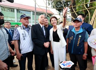 立法院長韓國瑜9日在南投縣長許淑華陪同下,於中興新村參觀茶博會,民眾及...