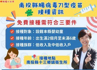 南投縣政府啟動全國首創,採購腸病毒71型疫苗,專供設籍本縣低收、中低收...