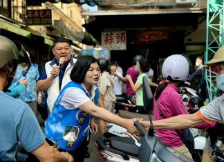 823反罷免投票進入最後衝刺,雲林縣長張麗善17日陪游顥於竹山市場拜票...
