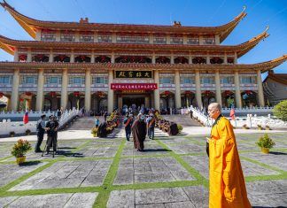 臺灣靈巖山寺舉辦「天佑亞太和平一護國息災地藏法會」,21日並捐贈500...
