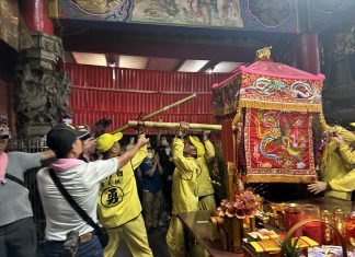 三神贊境活動引萬人空巷爭睹白沙屯媽祖粉紅鑾駕,傍晚6點三神贊境鑾駕依序...