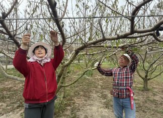 外埔徐寶卿夫妻開始整理水蜜桃園...