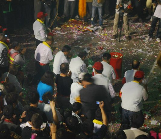 記者陳榮昌/台中報導 大甲鎮瀾宮媽祖九天八夜遶境起駕前起馬炮,傳...