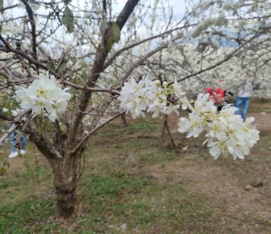 信義鄉熱鬧賞花季 白色李花及紅色櫻花相互爭豔