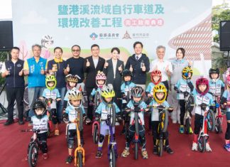 新竹市政府今(15)日上午於香山風火輪公園,舉辦「鹽港溪流域自行車道及...
