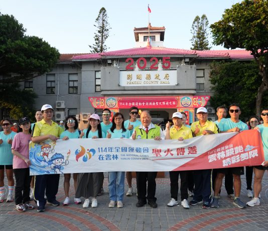 全國運聖火傳抵澎湖 陳光復點燃聖火臺 勉勵選手為鄉...